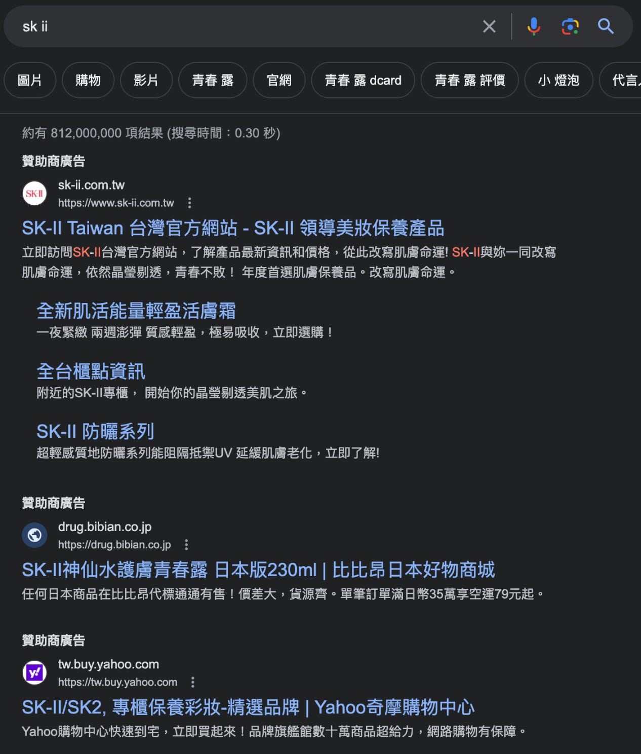 這時如果搭配品牌字廣告,就能確保消費者不管怎麼搜尋,第一眼就看到你的連結。甚至,還可以針對不同的關鍵字組合呈現不同的廣告內容。