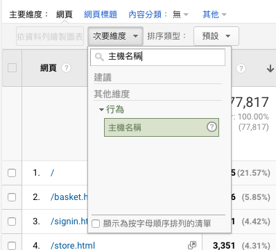 用次要維度拉出「主機名稱」,對很多不熟悉 Google Analytics 報表的人來說不直覺、也不友善。