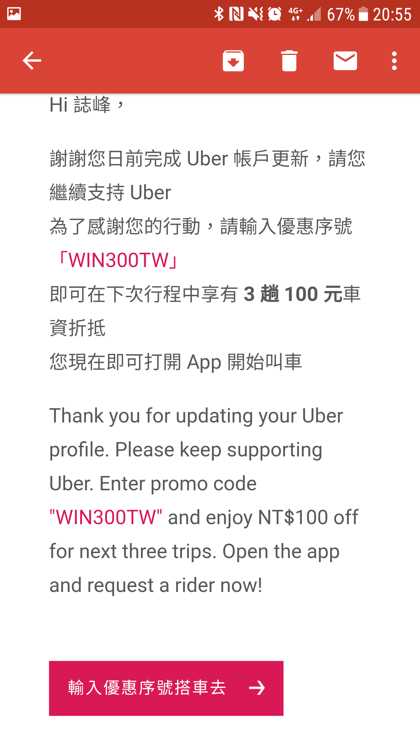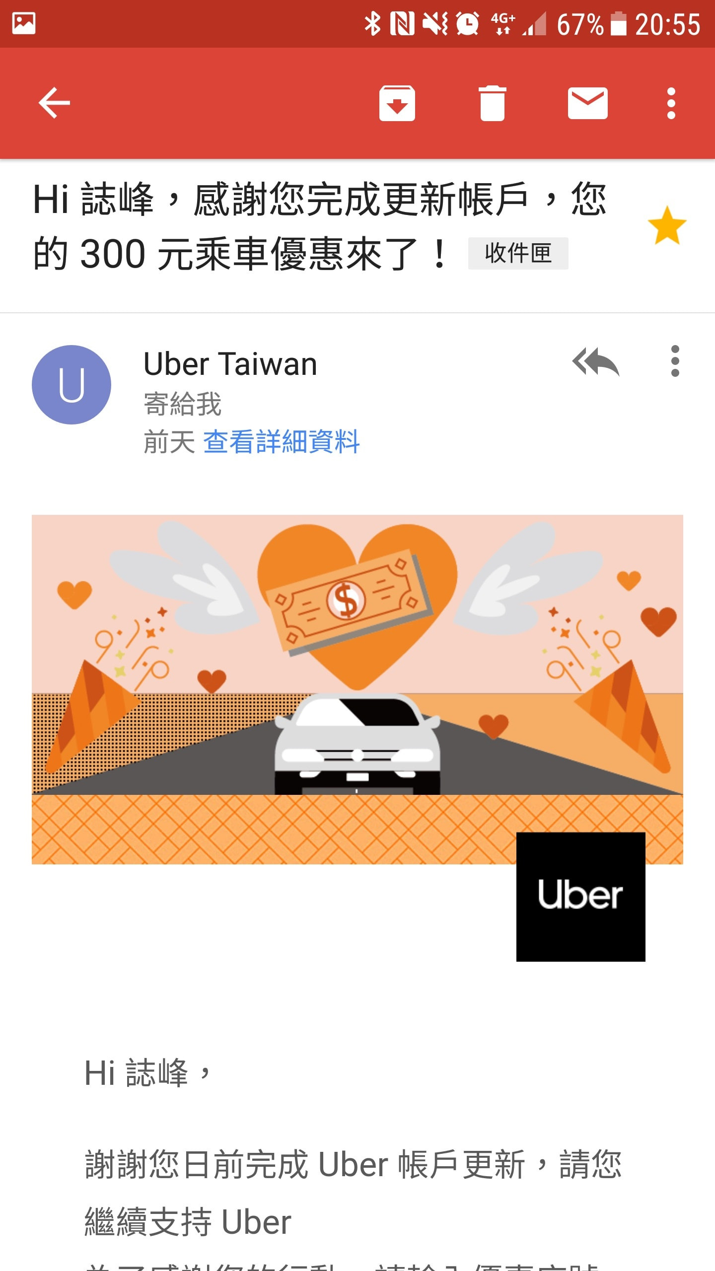 原本以為 Uber 的優惠券 EDM 跟一般電商收到的沒兩樣,都是大量發送,能回收多少是多少,但使用過後,讓我有了不一樣的感受。